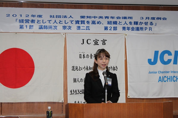本例会においては、メンバーとその友人知人の方々の魅力と資質の向上に繋がる講師例会を行い、経営者としての自覚を深め、人としての魅力と資質を向上させることを目的とする。メンバーにおいては青年会議所の魅力を友人知人に自信を持って語っていける意識付けをし、会員拡大に結びつけることを目的とする。また入会説明会参加や入会のきっかけをつくる。