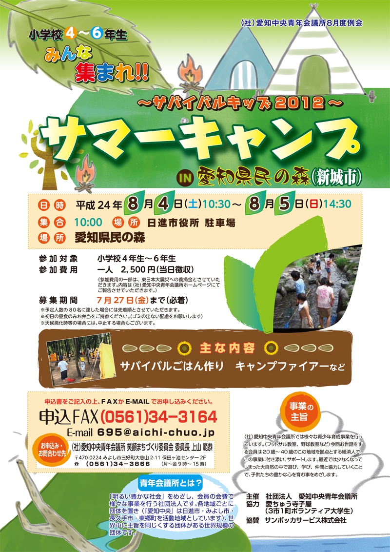 8月度例会「サマーキャンプ ~サバイバルキッズ2012 IN 愛知県民の森~」