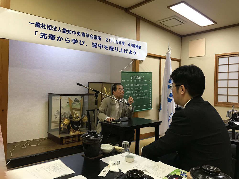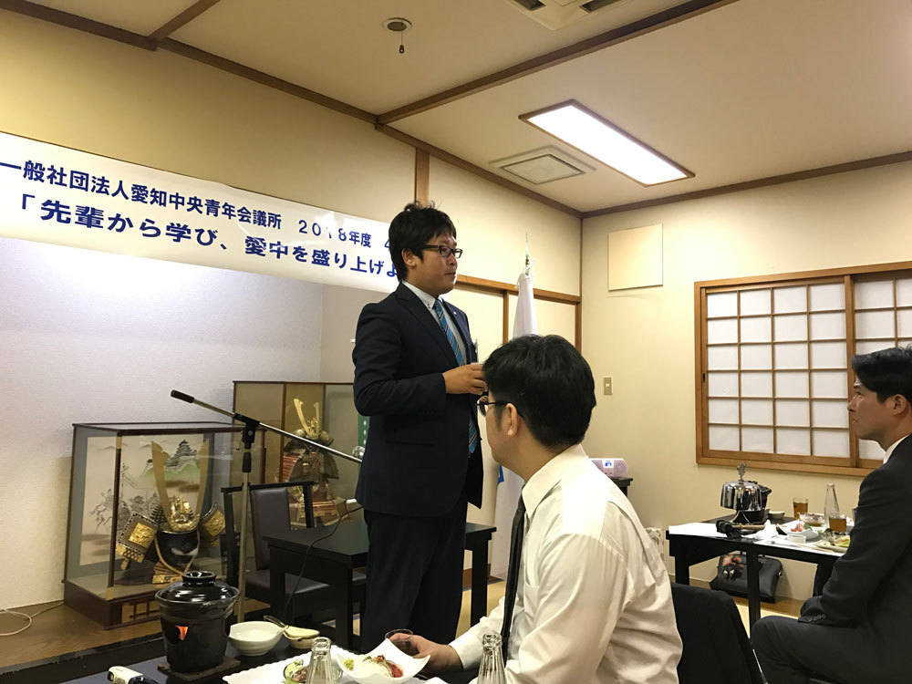 | 委員長コメント | 私共、一般社団法人愛知中央青年会議所は、4月度例会といたしまして、レストラン東郷にて「先輩から学び、愛中を盛り上げよう」を開催いたしました。本例会は、会員交流を通じ、会員同士、交流を図り、これからの青年会議所活動の意欲を向上させることを目的に行いました。例会当日は約半数の会員とともに、青年会議所の大先輩である野口俊介先輩を講師としてお招きいたしまして、野口先輩の培ってこられました経験などをお話ししていただきました。 一般社団法人愛知中央青年会議所はこれからも様々な事業をおこなっていきますので、これからもよろしくお願い申し上げます。 |