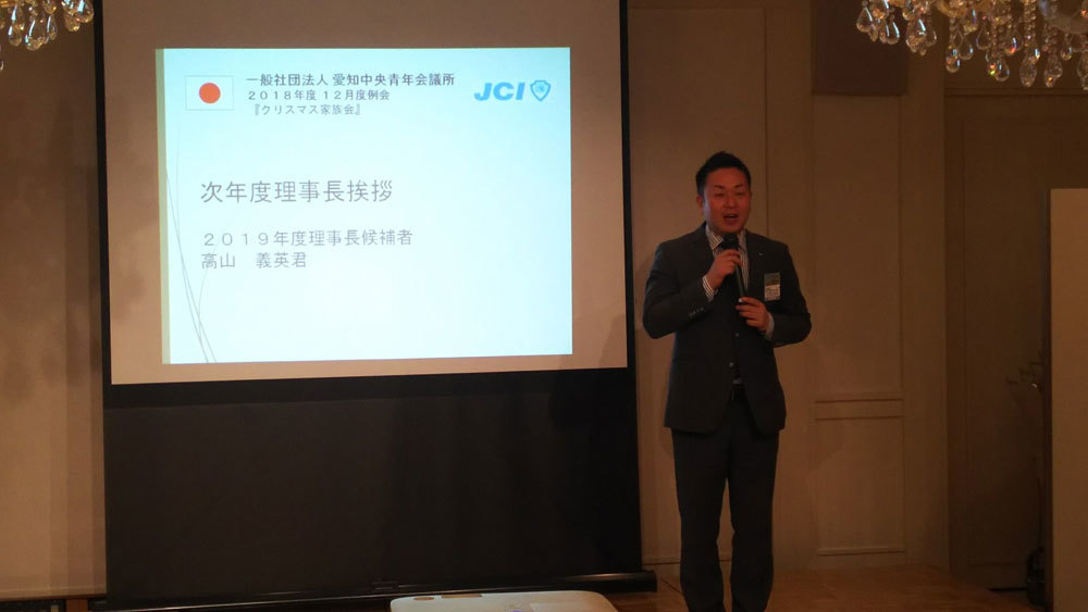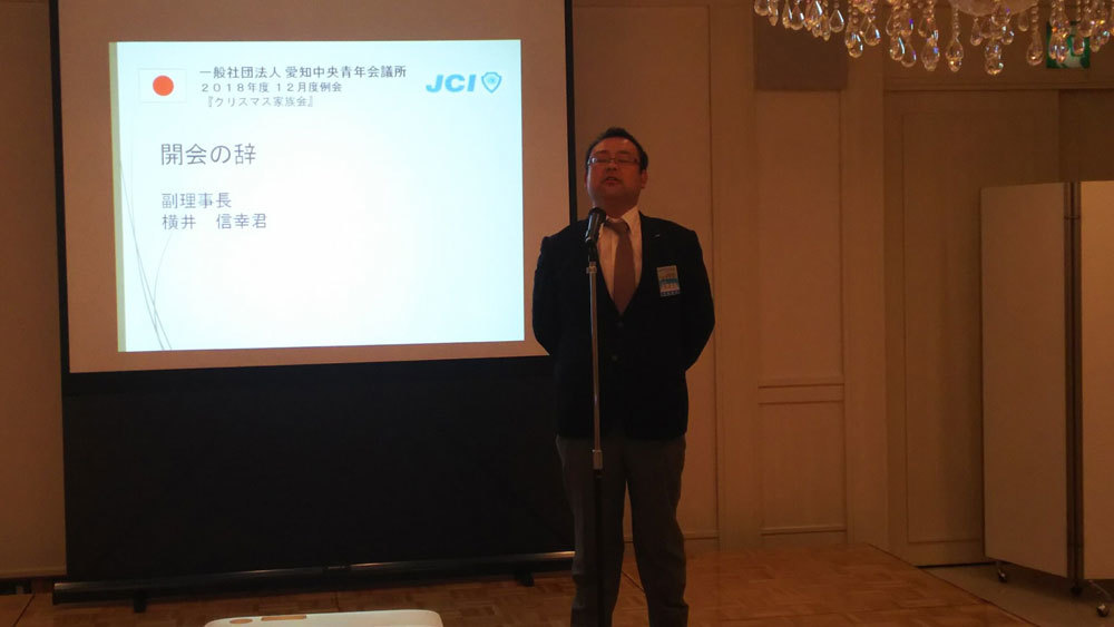 2018年度最後の例会となる12月度例会「クリスマス家族会」を12月8日(土)に名古屋ガーデンパレスにて開催いたしました。数多くのメンバー並びにメンバーのご家族の皆様にお越しいただきまして、誠にありがとうございます。設営の不備など多々ございましたが、無事終えることができました。