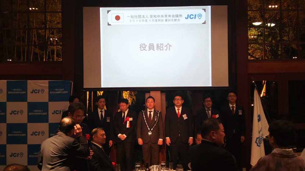 | 委員長コメント | 2019年度の先駆けとなる、1月度例会賀詞交歓会を1月21日に開催させていただきました。例会当日は多くの来賓・特別会員の方々にご臨席賜りまして、誠にありがとうございました。ご臨席賜りました多くの方に理事長の熱い思いを届けることができたことと思っております。また、各委員会の事業PRもさせていただき、本年度さらなる成長をお約束させていただきました。これからも地域のために活動をしていきますので、一年間どうぞ宜しくお願い申し上げます。 |