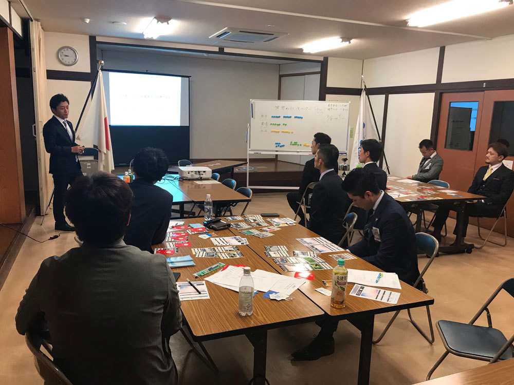 | 委員長コメント | 「SDGsの意義や目的を学ぼう」と題し、ファシリエーターとして一般社団法人蒲郡青年会議所より原野氏、小池氏をお招きし、セミナーを開催いたしました。講演ではSDGsの目的を学ぶために、カードゲームを行い、2030年を目標に未来がどう変わっていくかを体験できました。また、その体験がSDGsを自分の問題として捉える機会となりました。本例会で学んだことを青年会議所や事業に活かして、今後の経営力、発信力へと繋げて参ります。 |